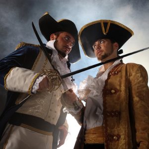 Observe a los piratas balanceándose de un barco a otro, luchando con la espada y montando un verdadero espectáculo de pandeo en el cine. El Capitán descubre la presencia del enemigo y grita a sus hombres que tomen posiciones de batalla, los cañones están ya listos para disparar. Los piratas armados con espadas y pistolas saltarán desde los mástiles y aterrizarán en la cubierta donde se llevará a cabo una pelea de espadas entre nuestra tripulación y los otros piratas.