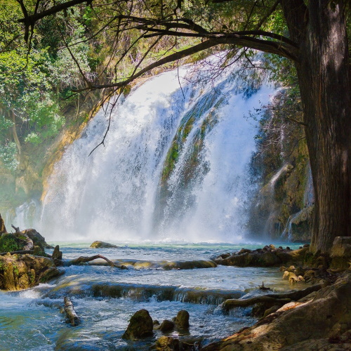 Today we will visit Lagos de Montebello national park, which is located near the border with Guatemala, comprising 59 multi-colored lakes in a pine forest and two Maya ruins. It was the first national park in Chiapas when created in 1959, and in 2009 the park was designated a Biosphere Reserve by UNESCO. The main attractions of the national park are its 59 lakes, collectively called the Montebello Lakes. The lakes are famous for their striking colors, which vary due to their different mineral contents, ranging from emerald and turquoise to dark green, and even purple and reddish black. About 15 of the lakes are easily accessible by car or foot. Lago Tziscao is the largest of the lakes with a village nearby. Other lakes include Montebello, La Cañada, Pojoj, and a group of five lakes known as the Lagunas de Colores (Lakes of Colors: Encantada, Ensueño, Esmeralda, Agua Tinta, and Bosque Azul). Our next stop will be Cascadas El Chiflón. This stunning place is more than just a waterfall. Wander through forest paths past stunning aqua waters that you can swim in. The smaller falls along the path are beautiful, but you’ll be blown away by the main cascade which drops an impressive 120 meters. Return to San Cristóbal de las Casas.